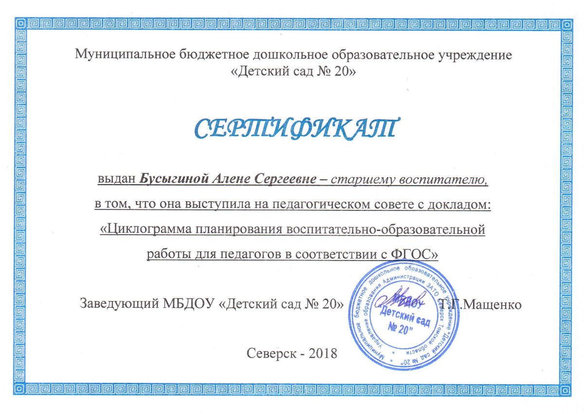 Педагогический совет в ДОО, доклад: "Циклограмма планирования воспитательно-образовательной работы для педагогов в соответствии с ФГОС ДО". МБДОУ "Детский сад № 20", Северск - 2018 г.
