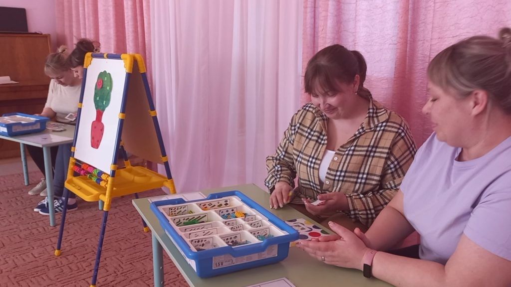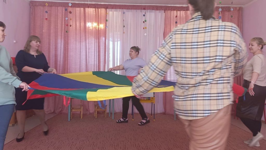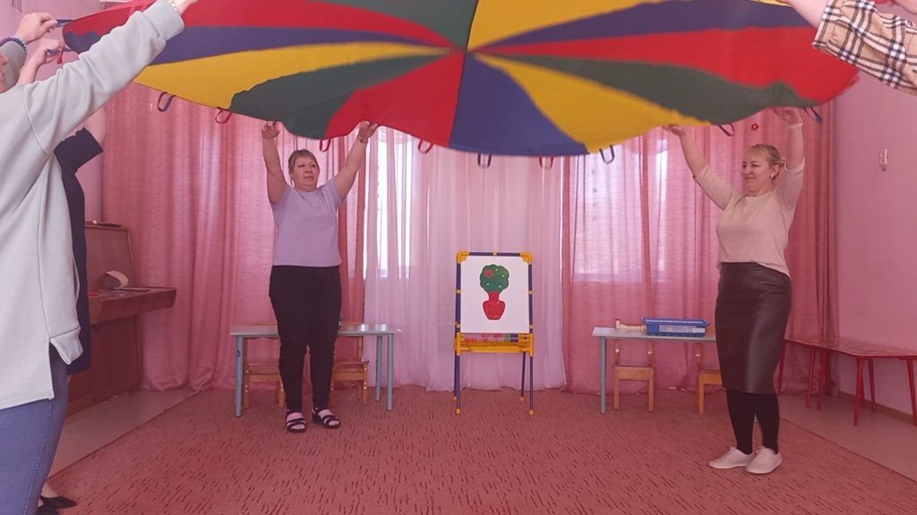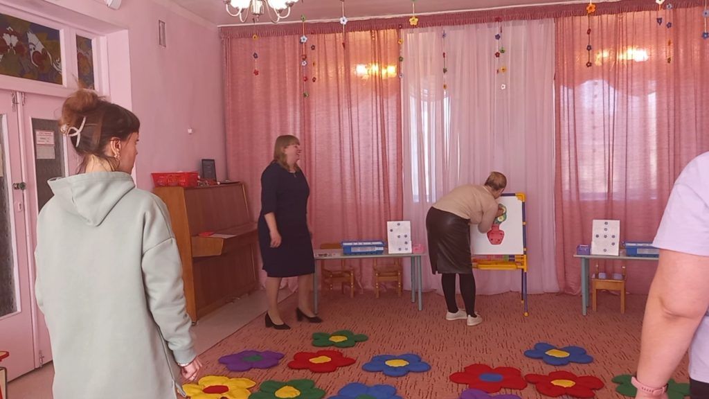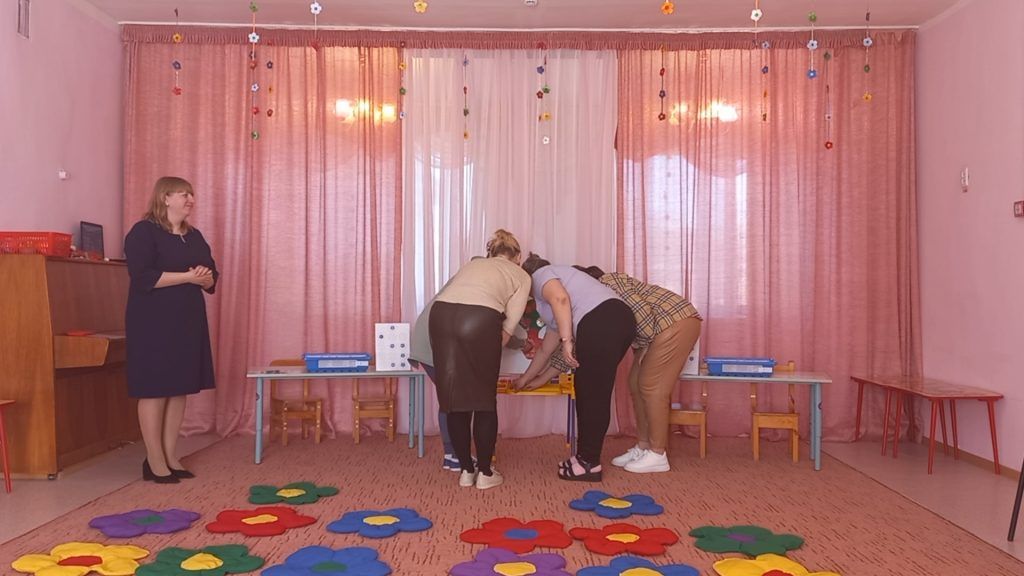 Затем, Алена Сергеевна представила подборку игр и упражнений по теме, и предложила педагогам опробовать все игры на себе, ведь известно, что лучший способ познания — это попробовать сделать что-то самому. Педагоги с удовольствием играли с «Волшебным парашютом», закрепляя при этом основные пространственные направления. Развивали способность определять свое местоположение и положение других людей в пространстве став пассажирами «Веселого паровозика». Познакомились с играми и упражнениями, направленными на развитие ориентировки на плоскости в двухмерном и трехмерном пространстве при помощи творческого набора стеклограм. Развивали пространственное мышление играя в «Муху» и «Веселые кружочки». Попробовали себя в роли инженеров-конструкторов при работе с робототехническими наборами «Лего Ведо 2.0».