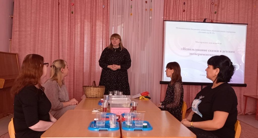 В МБДОУ «Детский сад № 20» прошел мастер-класс для педагогов по теме: «Использование сказки в детском экспериментировании», который провела старший воспитатель Бусыгина Алена Сергеевна.