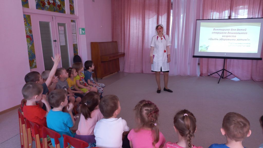 В гости к детям пришел доктор и обсудил с ребятами, что полезно есть на завтрак, сколько раз в день нужно чистить зубы, как правильно чихать если у тебя нет носового платка, полезны ли компьютерные игры и многое другое. Викторина позволила детям в игровой форме закрепить полученные знания.